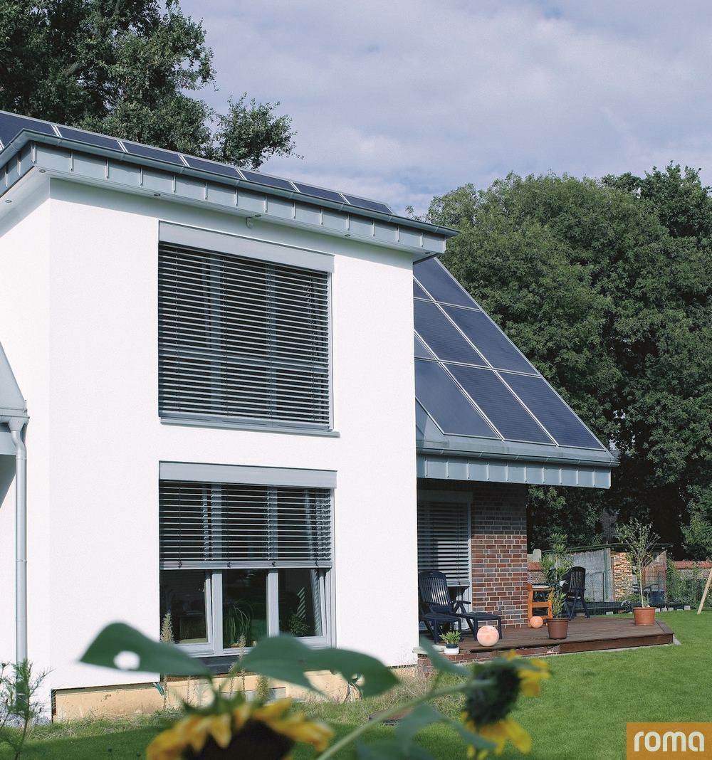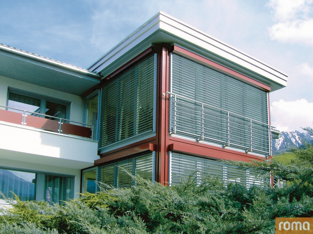 Moderne Häuser mit viel Glas liegen voll im Trend. Doch wer ein übermäßiges Aufheizen der Räume vermeiden will, der benötigt effektiven Sonnenschutz. Innen liegend ist er zu diesem Zweck weitgehend wirkungslos, da die Hitze bereits durch die Fensterscheibe dringen kann. Als Alternative zu Rollladen bieten sich hier Raffstoren aus Aluminium von ROMA an. Sie reflektieren die Sonnenstrahlen und lassen durch Drehen der Lamellen soviel Licht ins Rauminnere wie Sie wünschen.